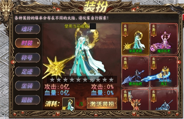 各类时装不但拥有酷炫的外观,还能为角色大幅提升攻击、血量等数值。