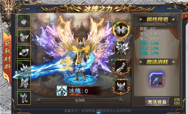 玩家穿戴各类冰魄装备,能够积攒冰魄之力,进而提升自身的防御与攻击力。
